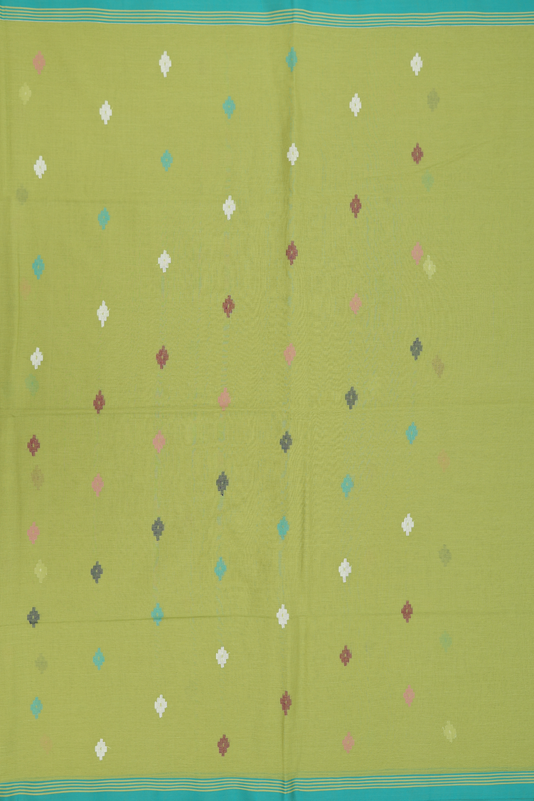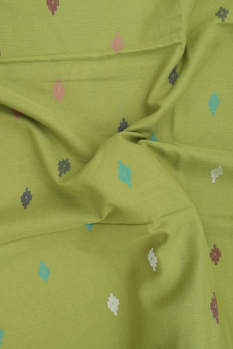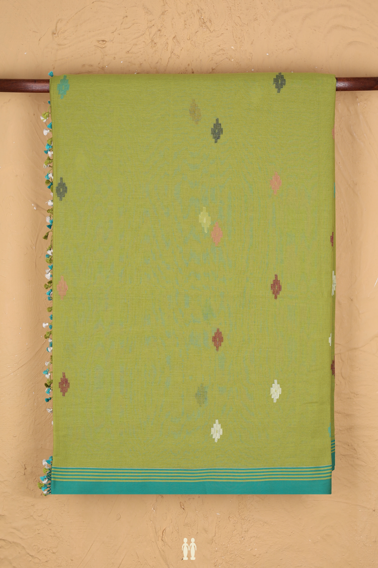 Bengal Cotton Saree In Pear Green With Threadwork Buttas
