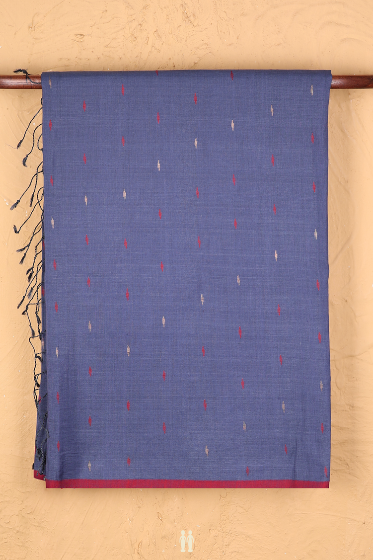 Bengal Cotton Saree In Pigeon Blue With Threadwork Buttas