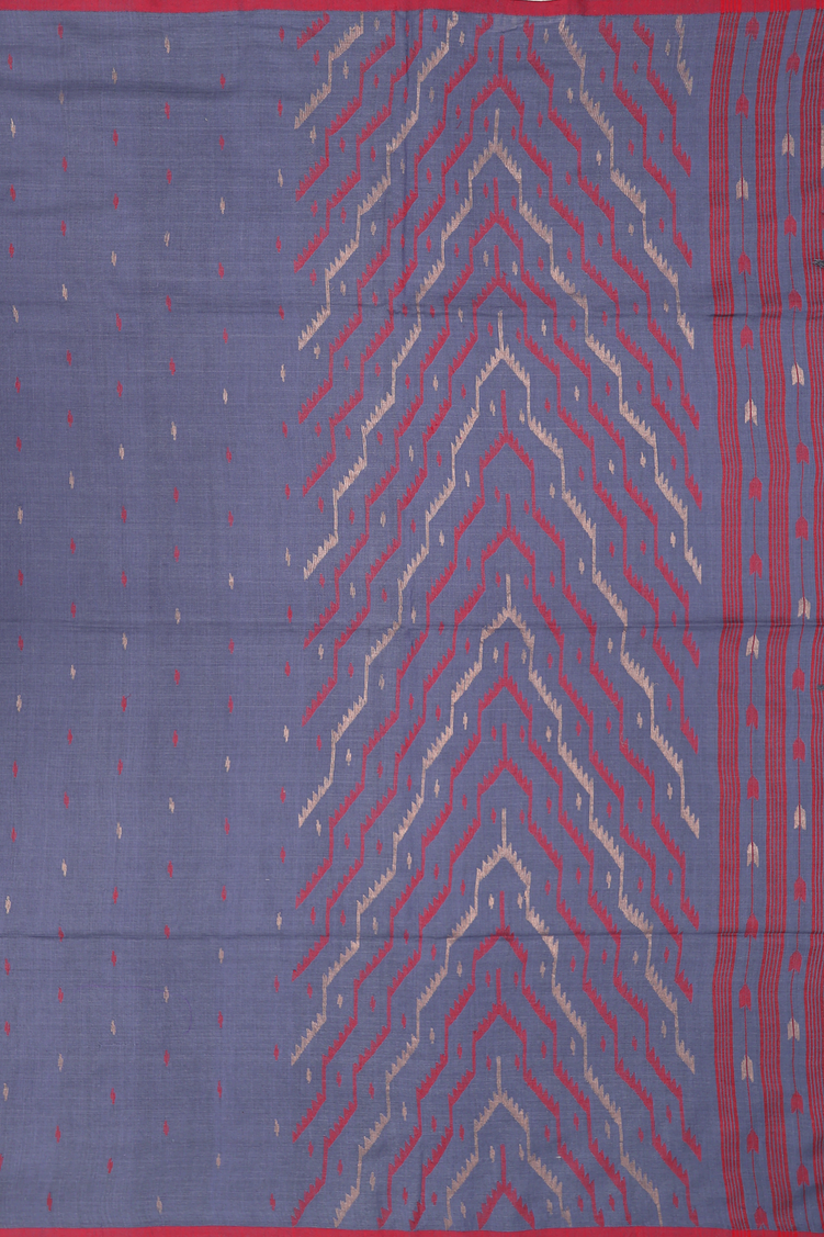 Discover the understated beauty of this Bengal cotton saree in soft pigeon blue, featuring intricate threadwork buttas that reflect traditional artisanal skill. The striking red selvedge adds a vibrant finishing touch to this classic design. Crafted from breathable cotton, this saree transitions effortlessly from daily wear to festive occasions. A timeless wardrobe essential that honors heritage weaving techniques with contemporary appeal.