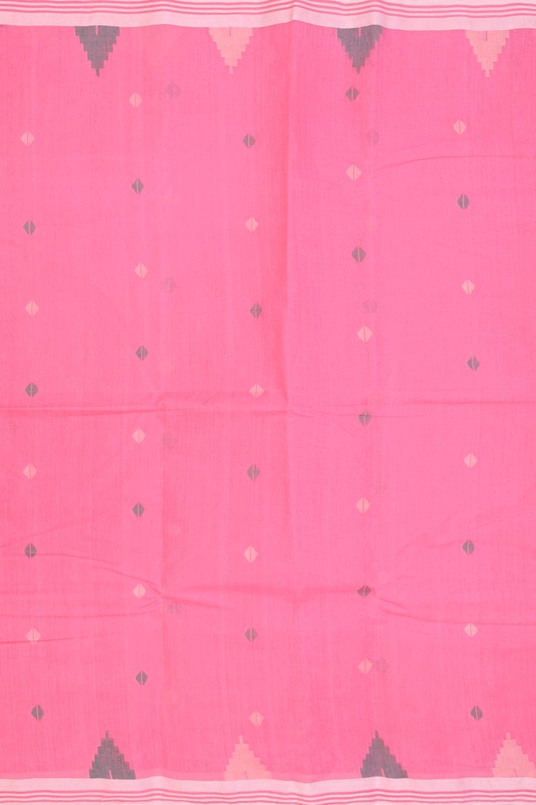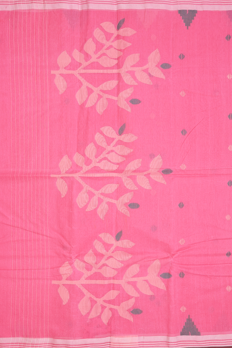 Bengal Cotton Saree In Pink With Threadwork Buttas