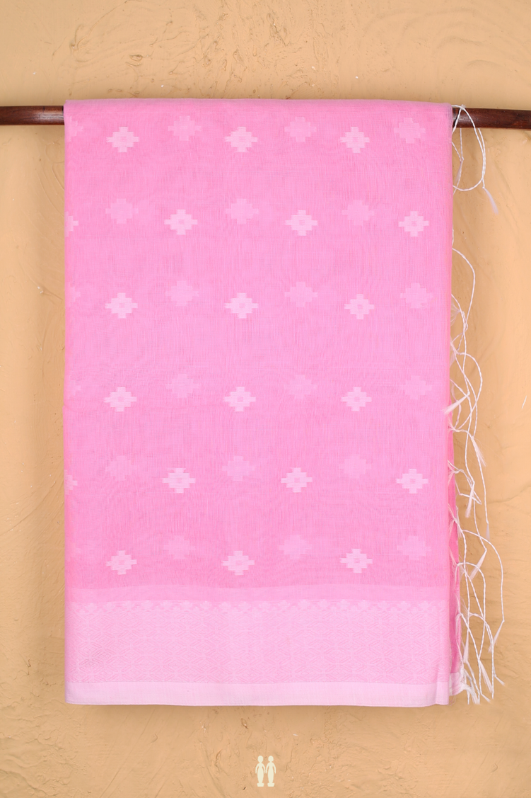 Bengal Cotton Saree In Pink With Threadwork Buttas