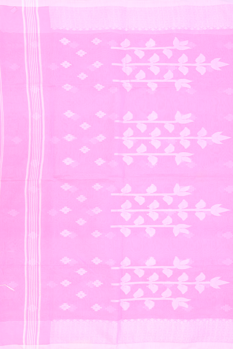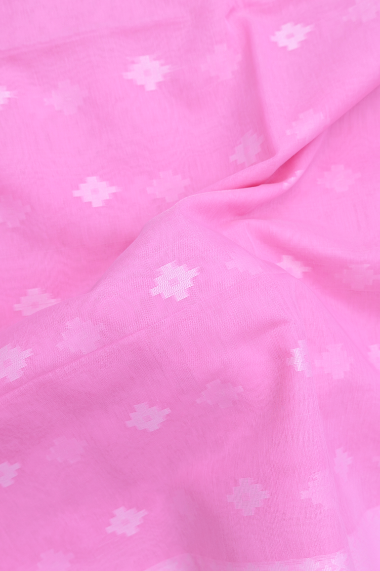 Experience the timeless charm of this bengal cotton saree in a graceful pink hue, adorned with delicate threadwork buttas. Crafted for comfort and elegance, its lightweight fabric drapes effortlessly, making it perfect for both casual gatherings and formal occasions. The intricate buttas add a refined touch, showcasing skilled craftsmanship while enhancing its understated beauty. This saree blends traditional artistry with modern sophistication, offering a versatile addition to your wardrobe.