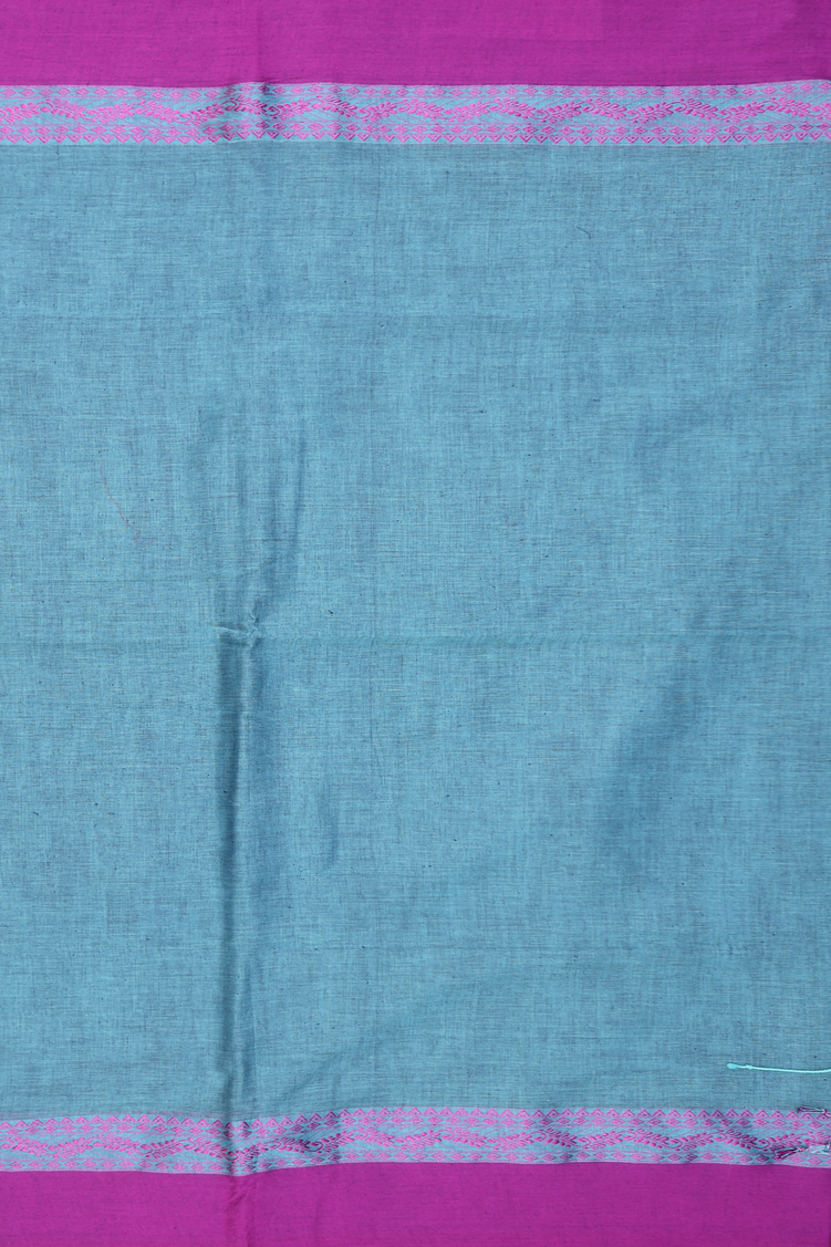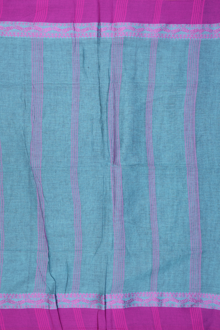 Bengal Cotton Saree In Plain Blue With Contrast Border