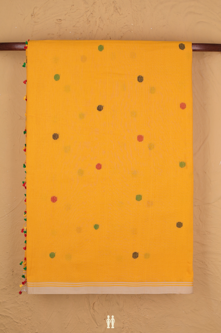 Bengal Cotton Saree In Royal Orange With Threadwork Buttas