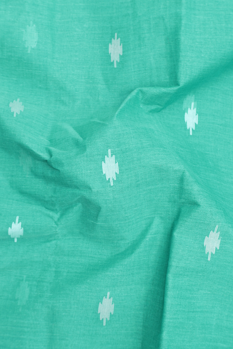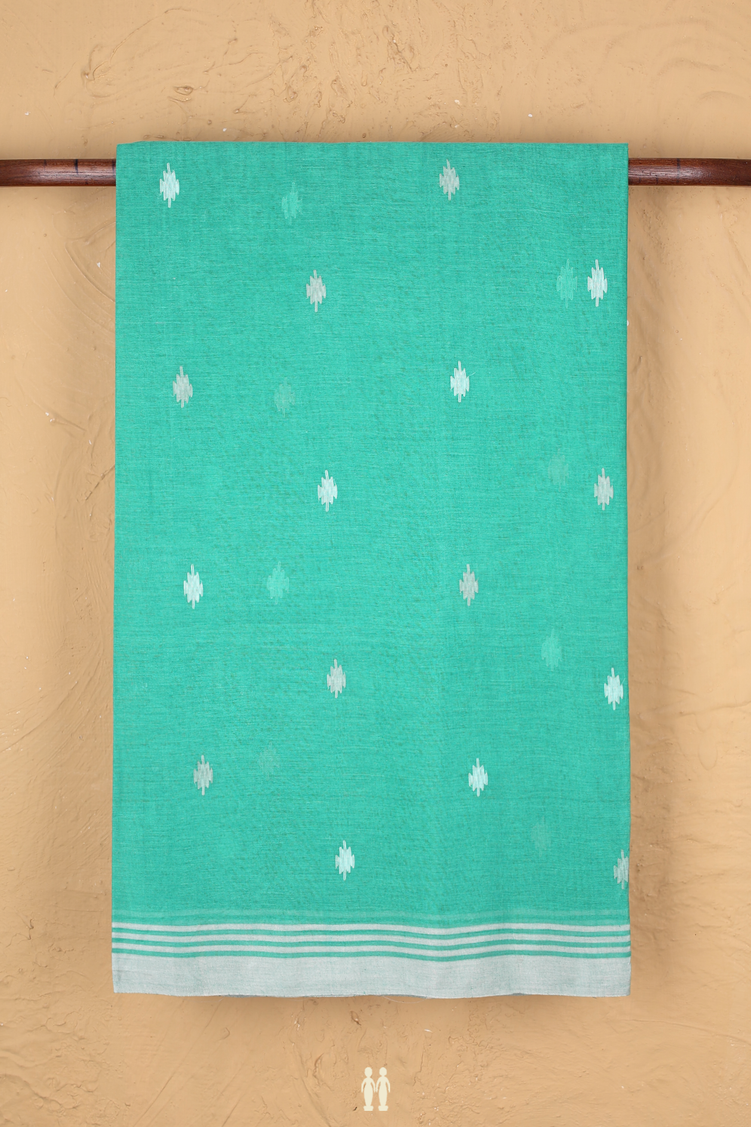 Bengal Cotton Saree In Sea Green With Threadwork Buttas