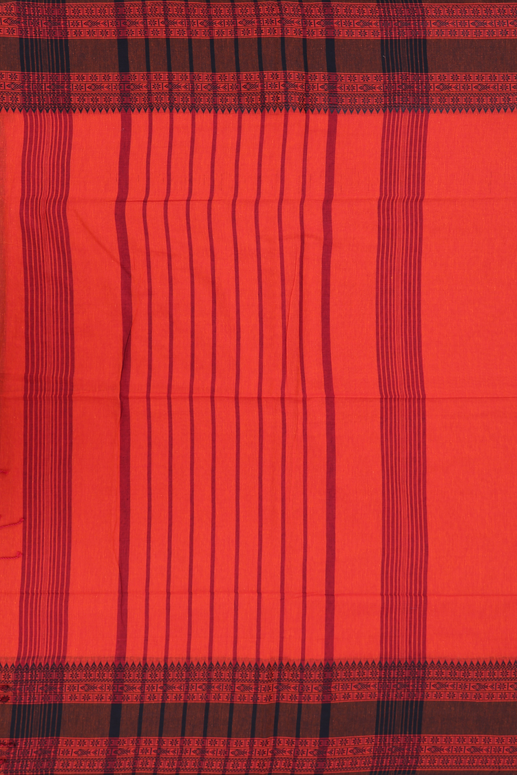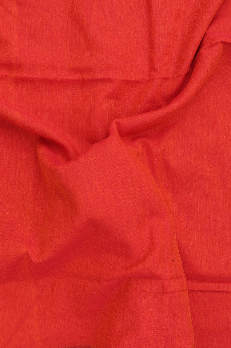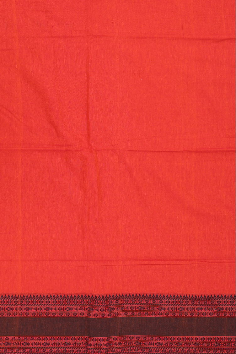 Bengal Cotton Saree In Vermillion Red With Threadwork Border