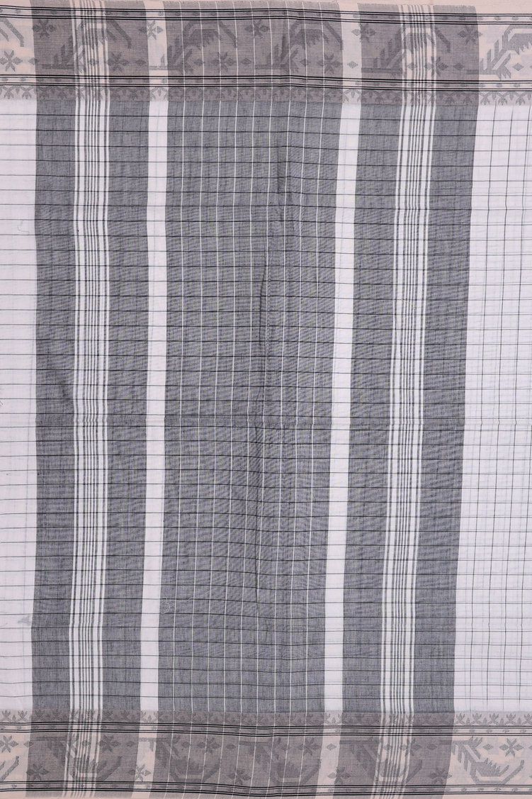Bengal Cotton Saree In White With Checks Design