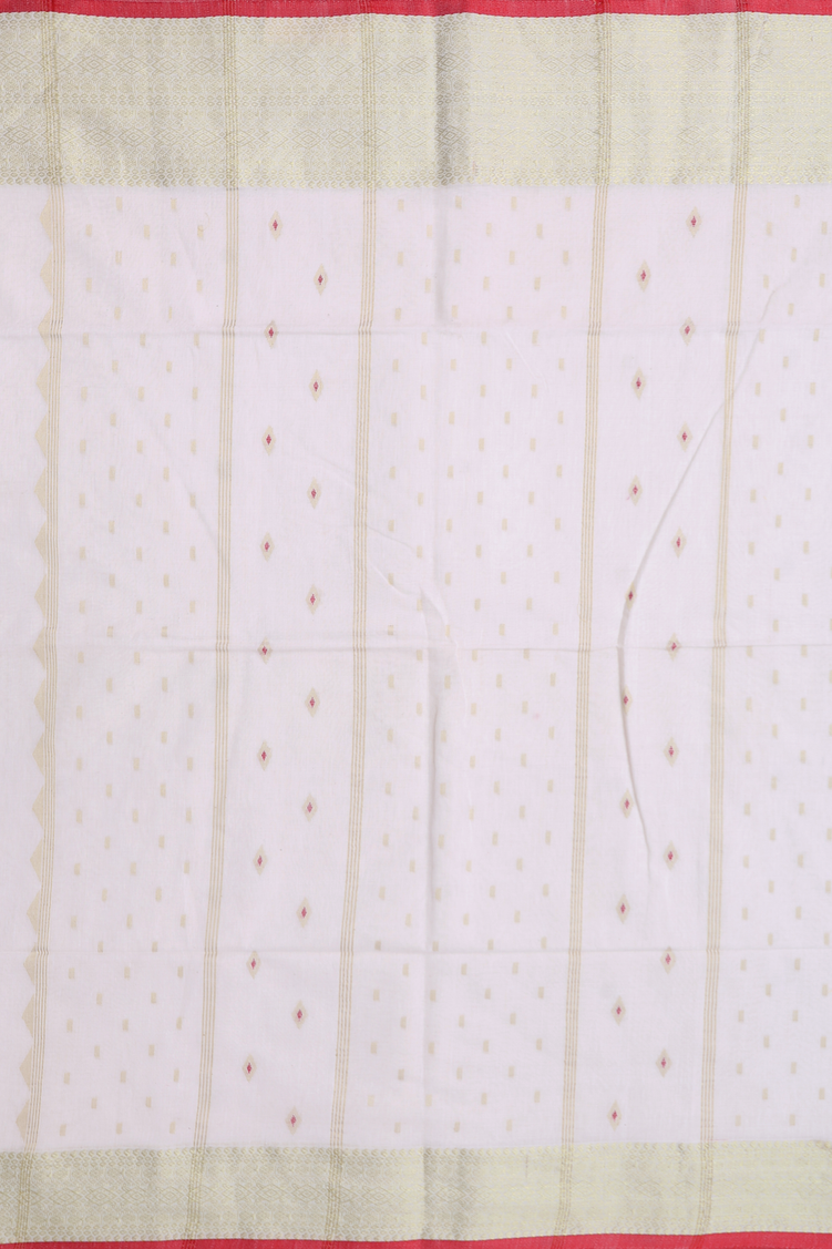 Bengal Cotton Saree In White With Floral Buttas