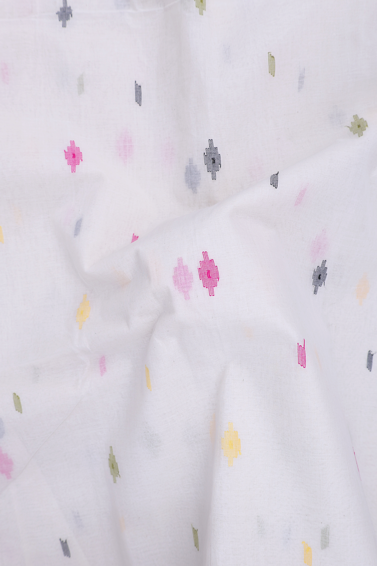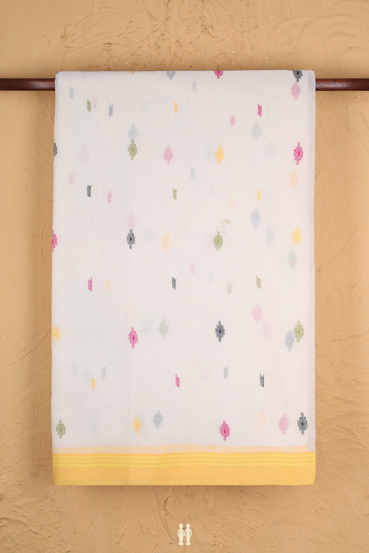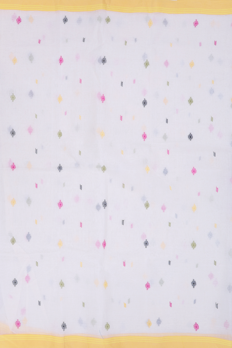 Bengal Cotton Saree In White With Threadwork Buttas