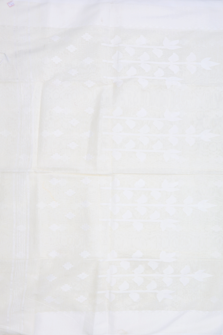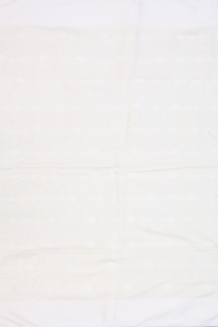 Elevate your wardrobe with this bengal cotton saree in pristine white, adorned with delicate threadwork buttas that add subtle elegance. Lightweight and breathable, it offers unmatched comfort while the intricate detailing enhances its timeless charm. Perfect for formal occasions or graceful daytime events, this saree blends tradition with refined simplicity for a sophisticated look.