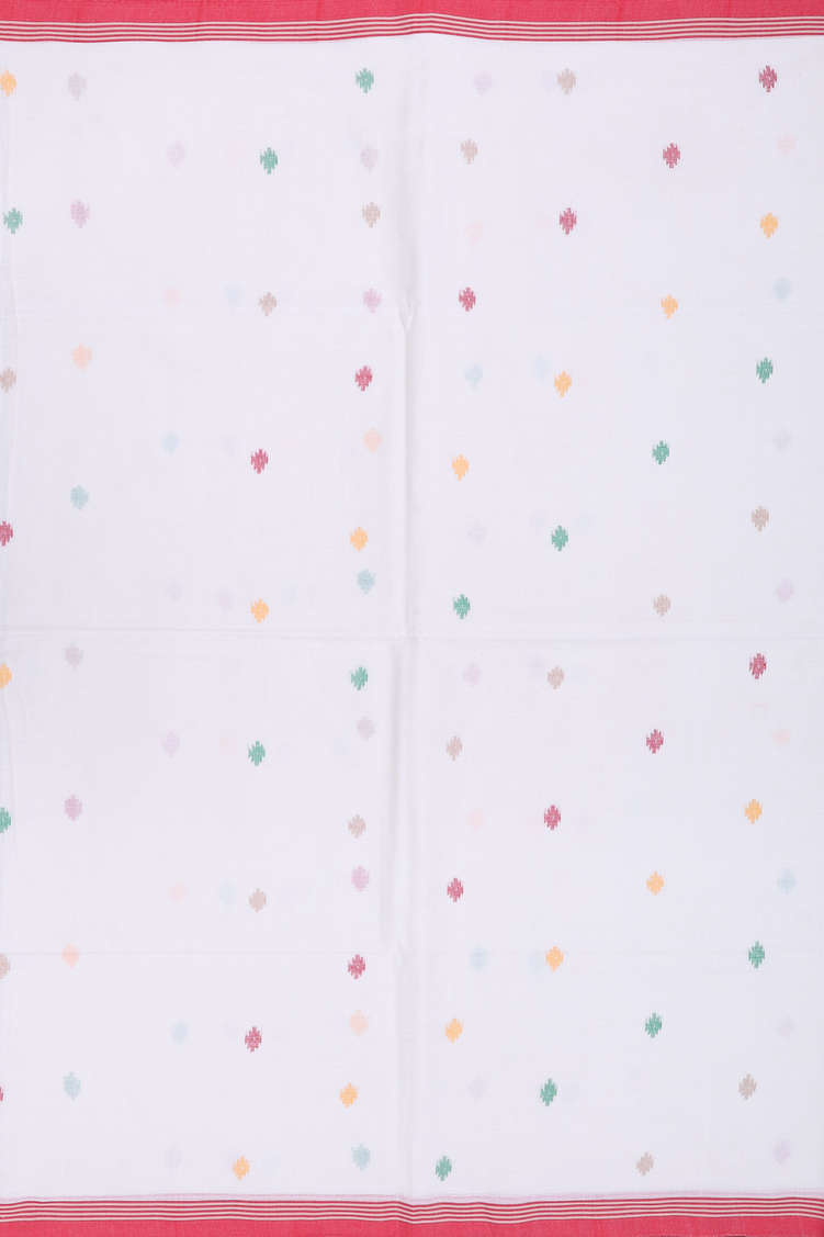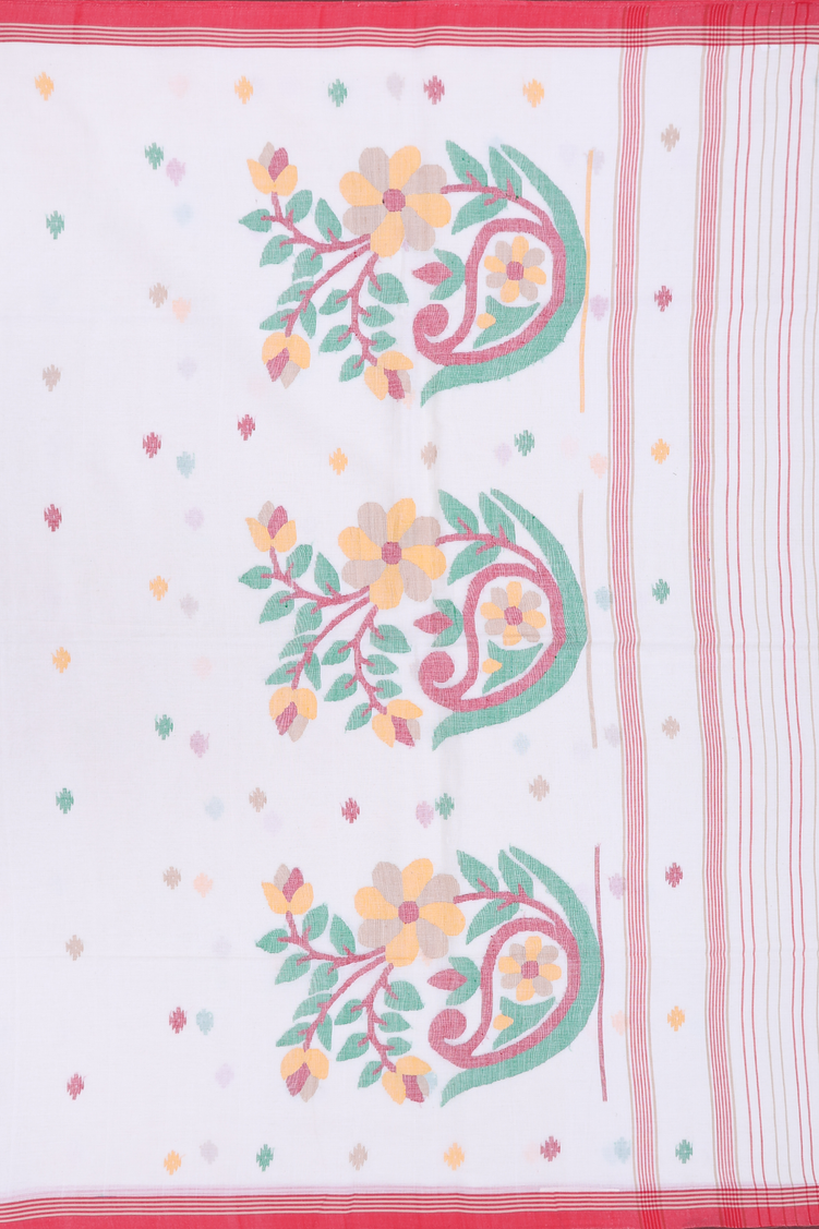 Elevate your everyday elegance with this exquisite bengal cotton saree, a masterpiece of refined simplicity. Crafted from premium cotton, this pristine white saree features delicate threadwork buttas that add subtle sophistication without overwhelming the design. The intricate embroidered motifs showcase traditional artisanal craftsmanship, making it perfect for both casual gatherings and semi-formal occasions. The breathable cotton fabric ensures comfort throughout the day, while the timeless white palette offers versatile styling possibilities. A contemporary take on classic Bengal weaving, this saree celebrates understated luxury and cultural heritage.