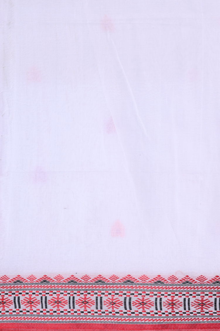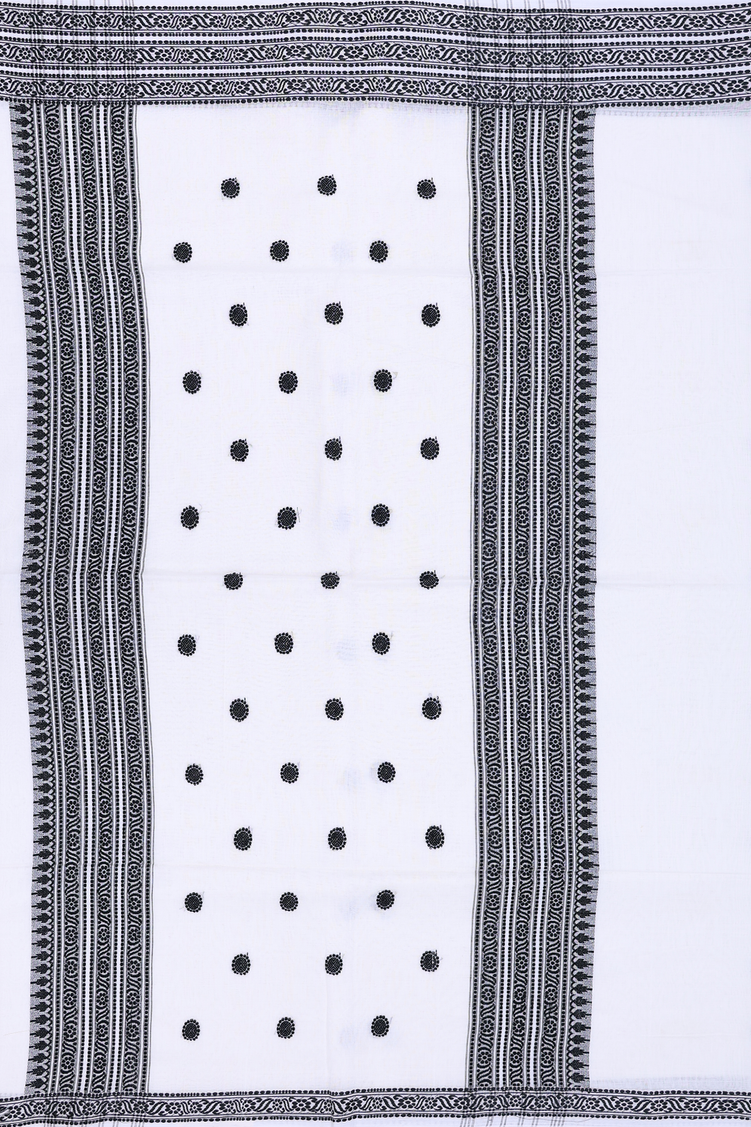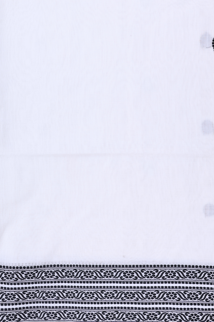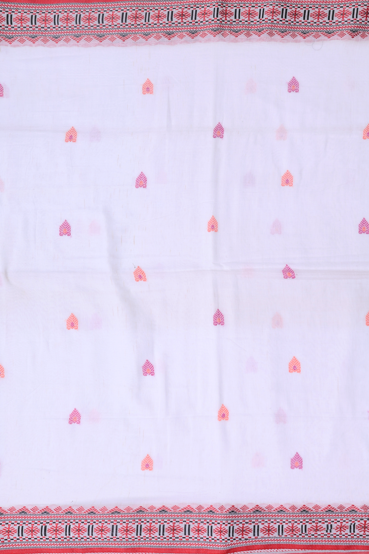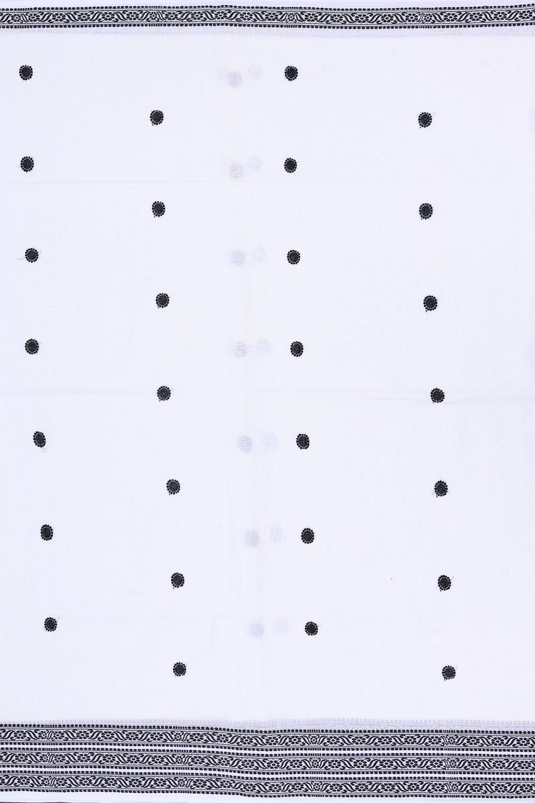 Bengal Cotton Saree In White With Threadwork Buttas