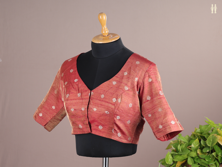 Boat Neck Floral Buttas Burnt Orange Raw Silk Readymade Blouse