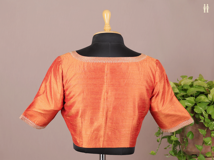 Boat Neck Plain Burnt Orange Raw Silk Readymade Blouse