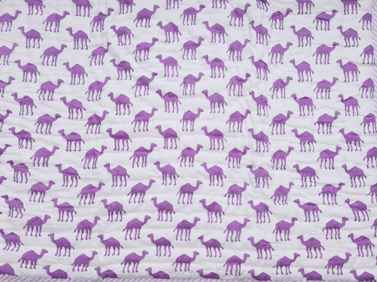 Camel Printed Design White Cotton Single Kids Bedspread