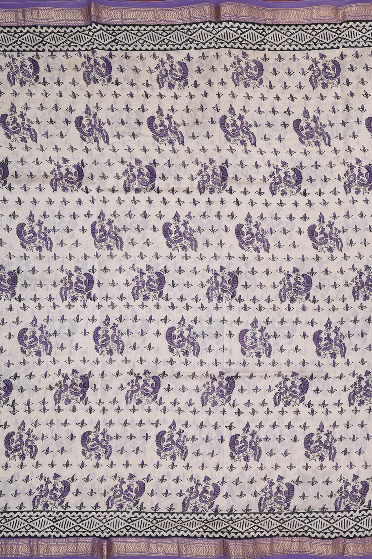Chanderi Cotton Saree In Ivory With Peacock Design