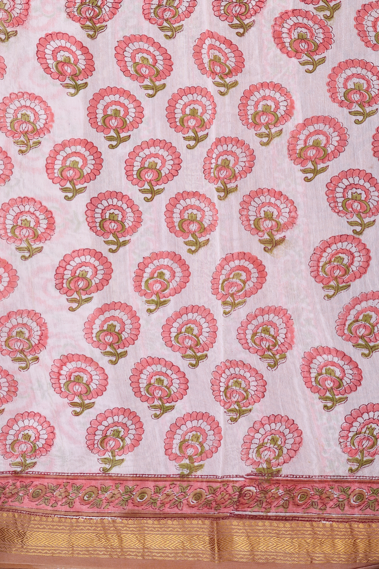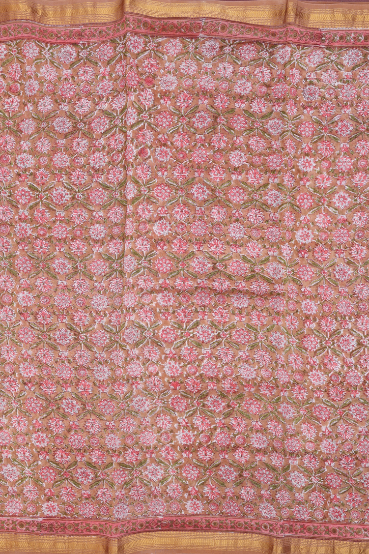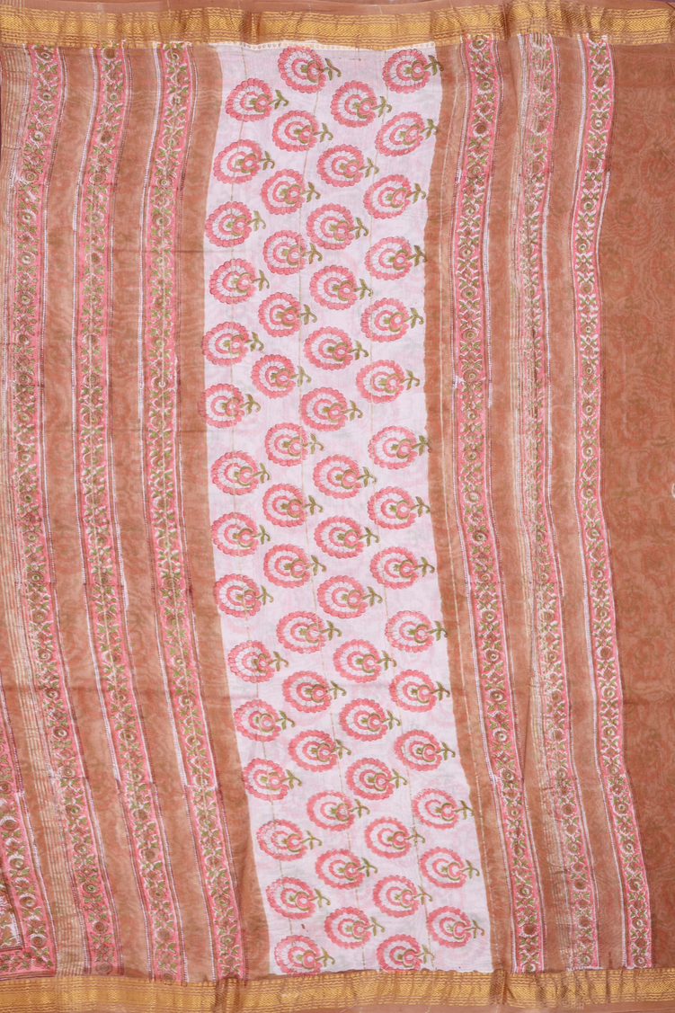 Chanderi Cotton Saree In Brown With Floral Design