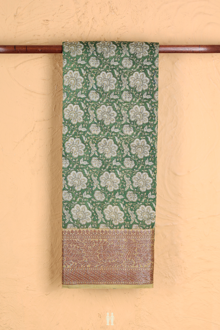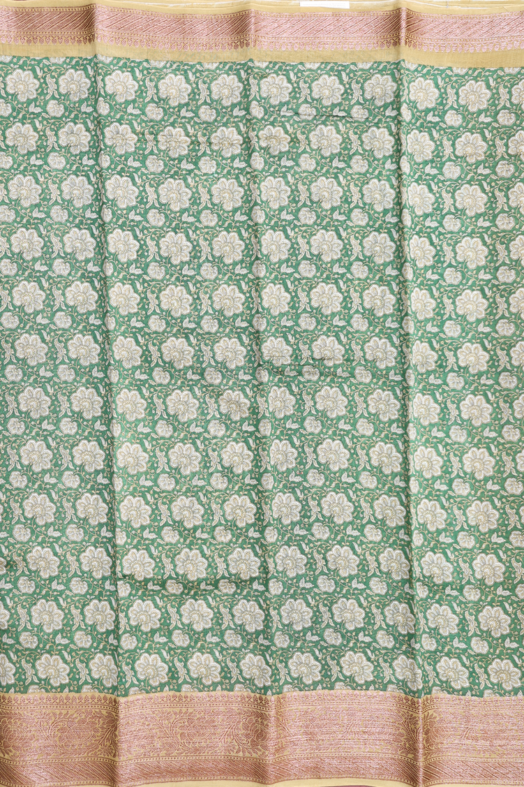 Chanderi Cotton Saree In Fern Green With Floral Design