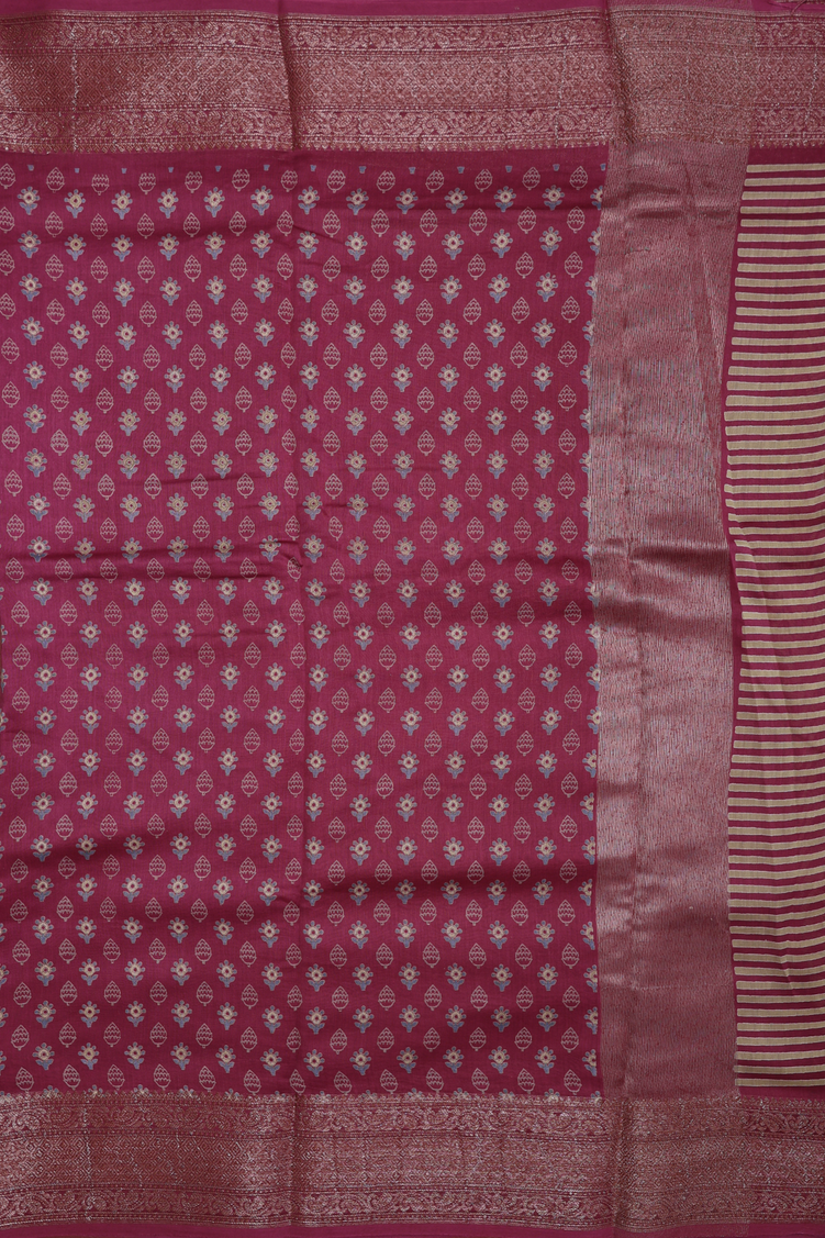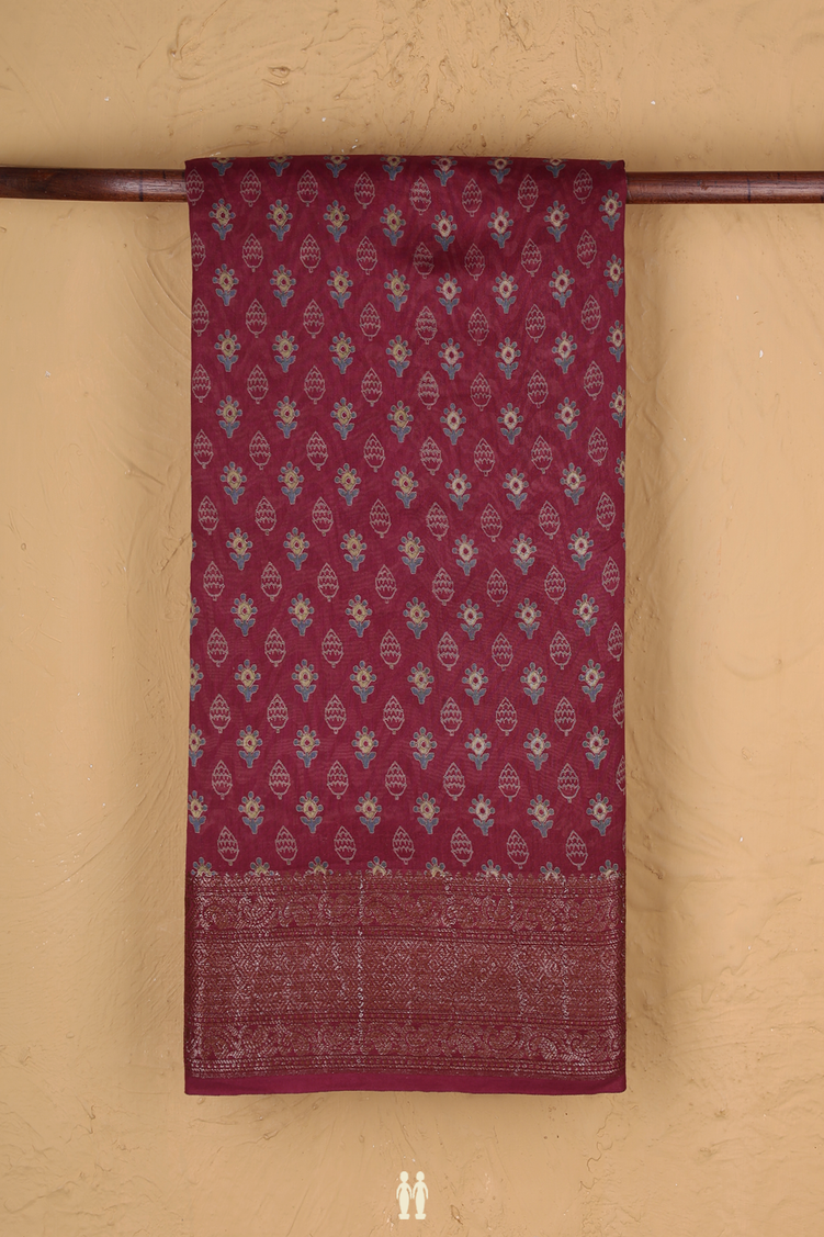 Chanderi Cotton Saree In Mulberry With Printed Design
