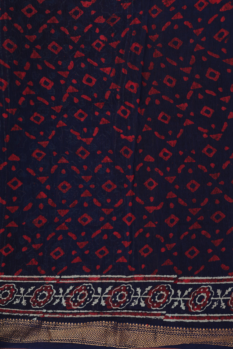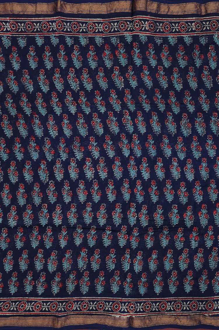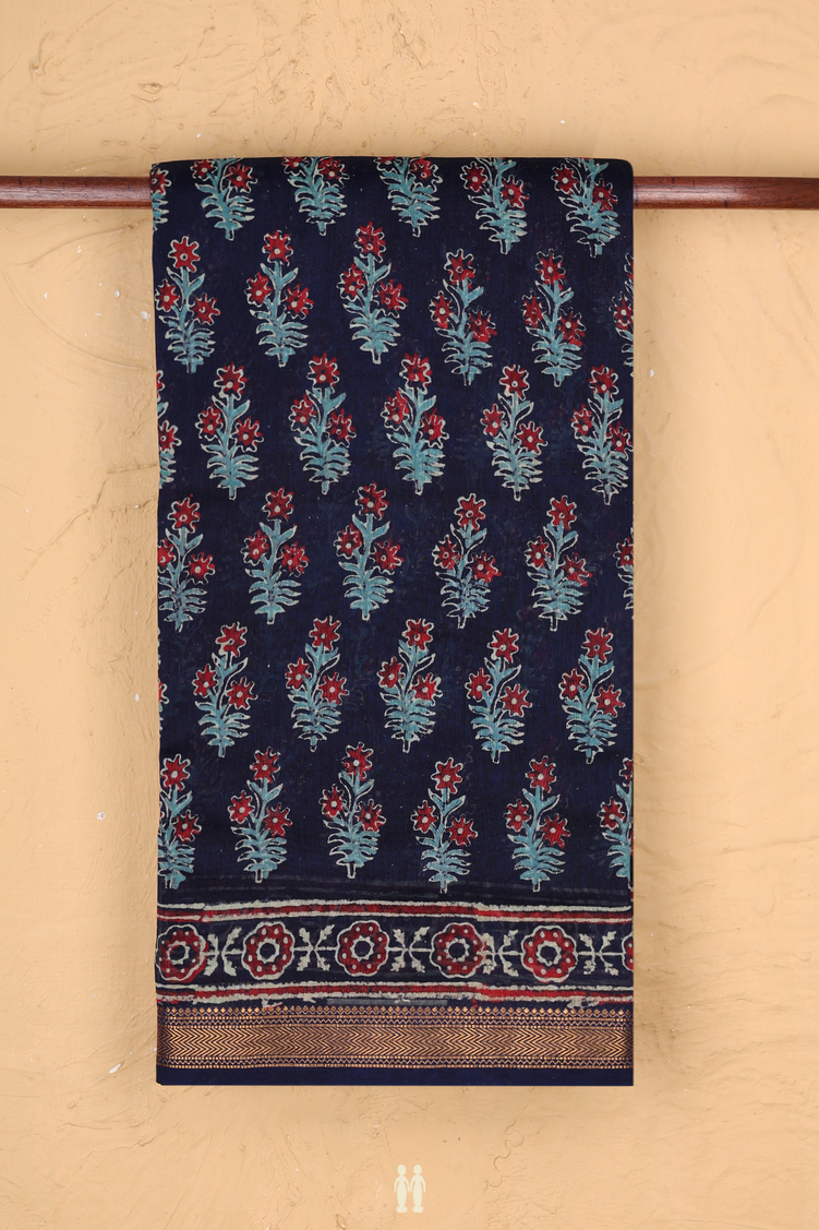 Chanderi Cotton Saree In Navy Blue With Floral Design