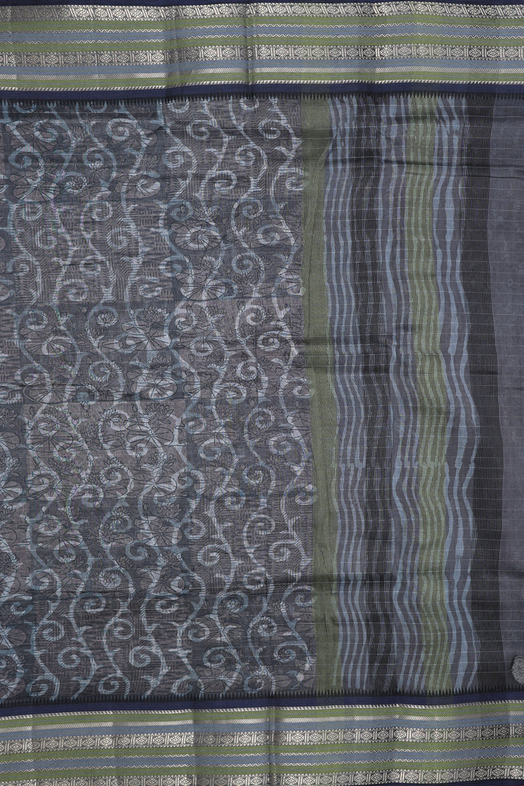 Chanderi Cotton Saree In Oxford Brown With Printed Design