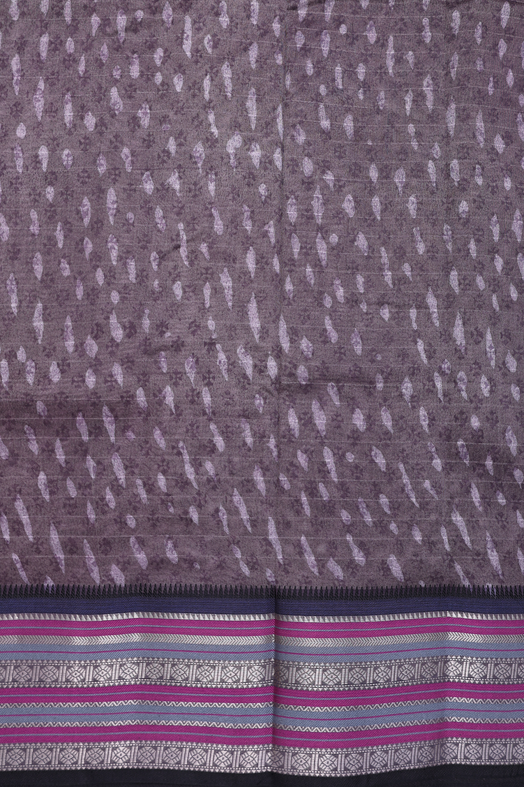Chanderi Cotton Saree In Oxford Brown With Printed Design