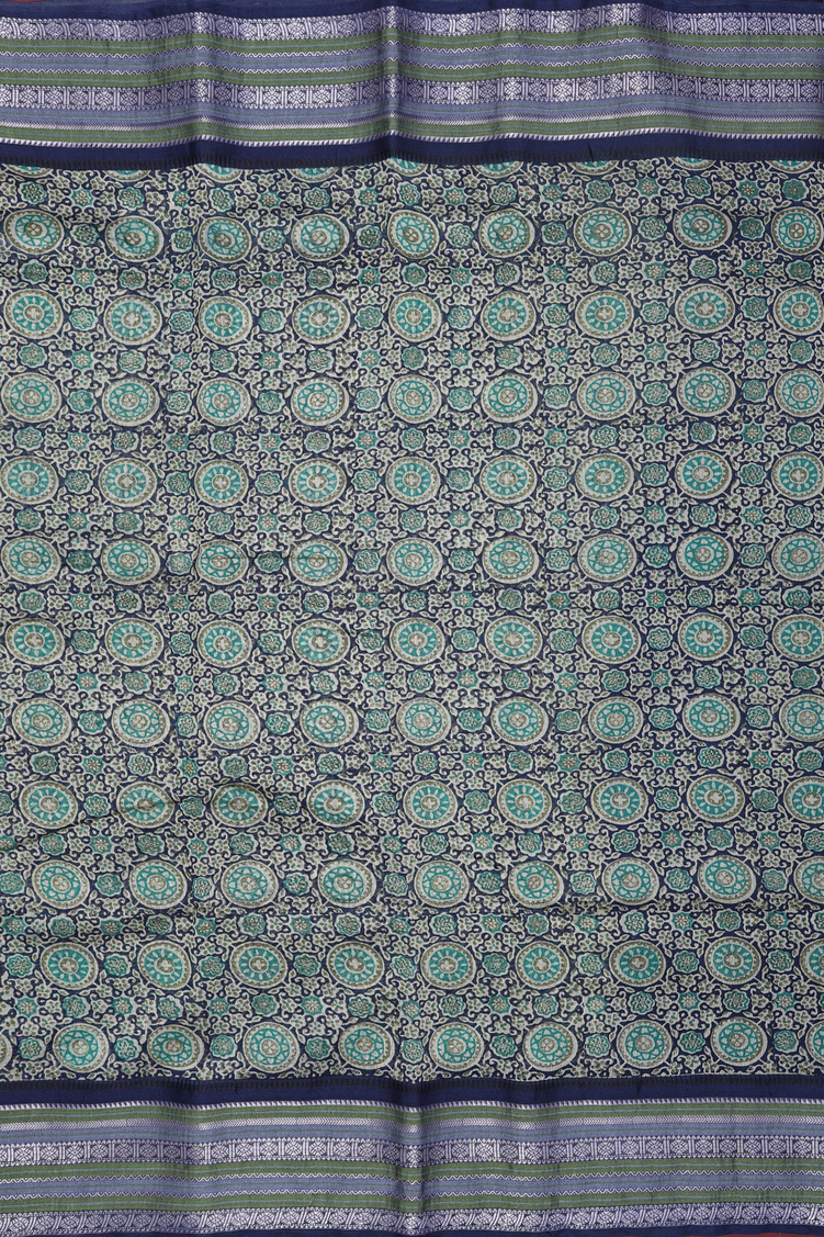 Chanderi Cotton Saree In Prussian Blue With Printed Design