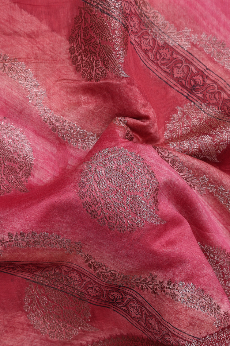 Chanderi Cotton Saree In Red With Allover Design