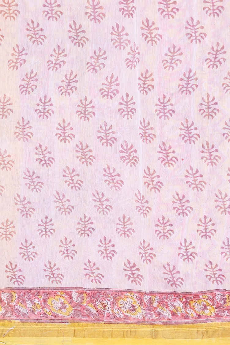 Chanderi Cotton Saree In Yellow With Floral Design