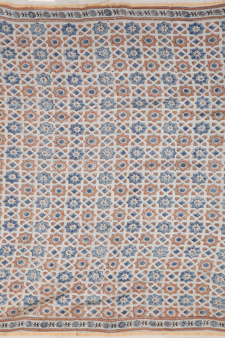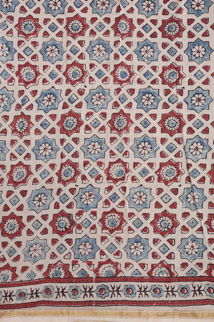 Chanderi Silk Cotton Saree In Beige With Ajrakh Printed Design