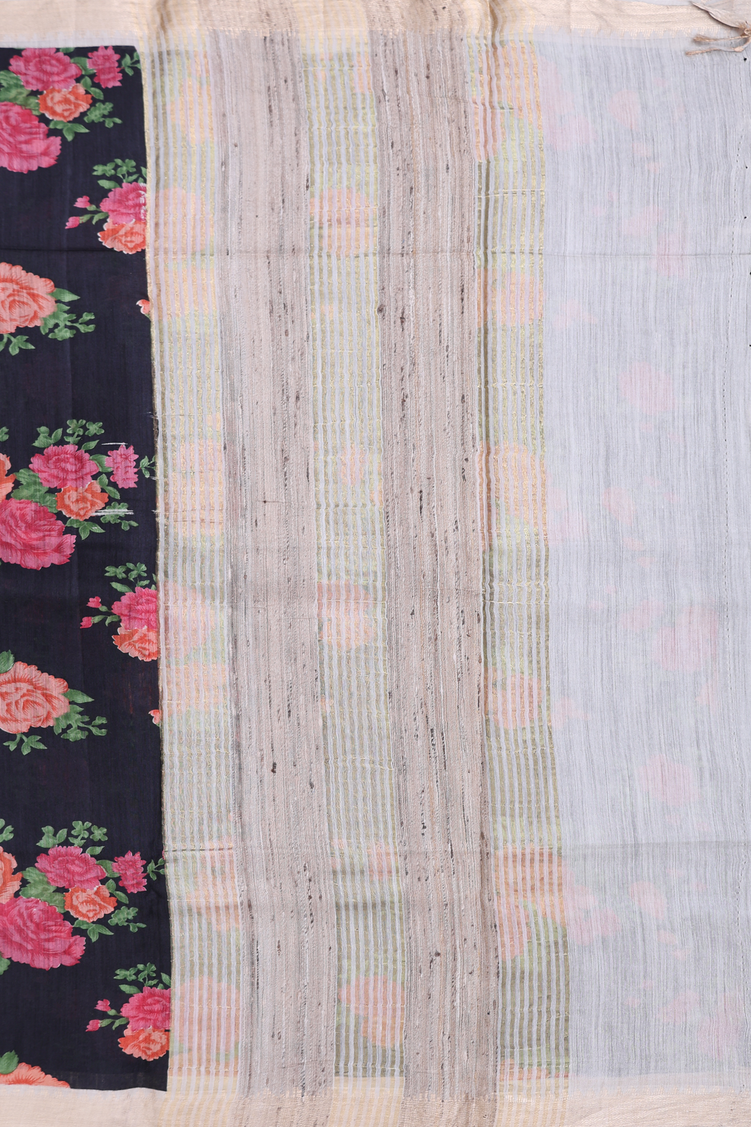 Chanderi Silk Cotton Saree In Black With Floral Design