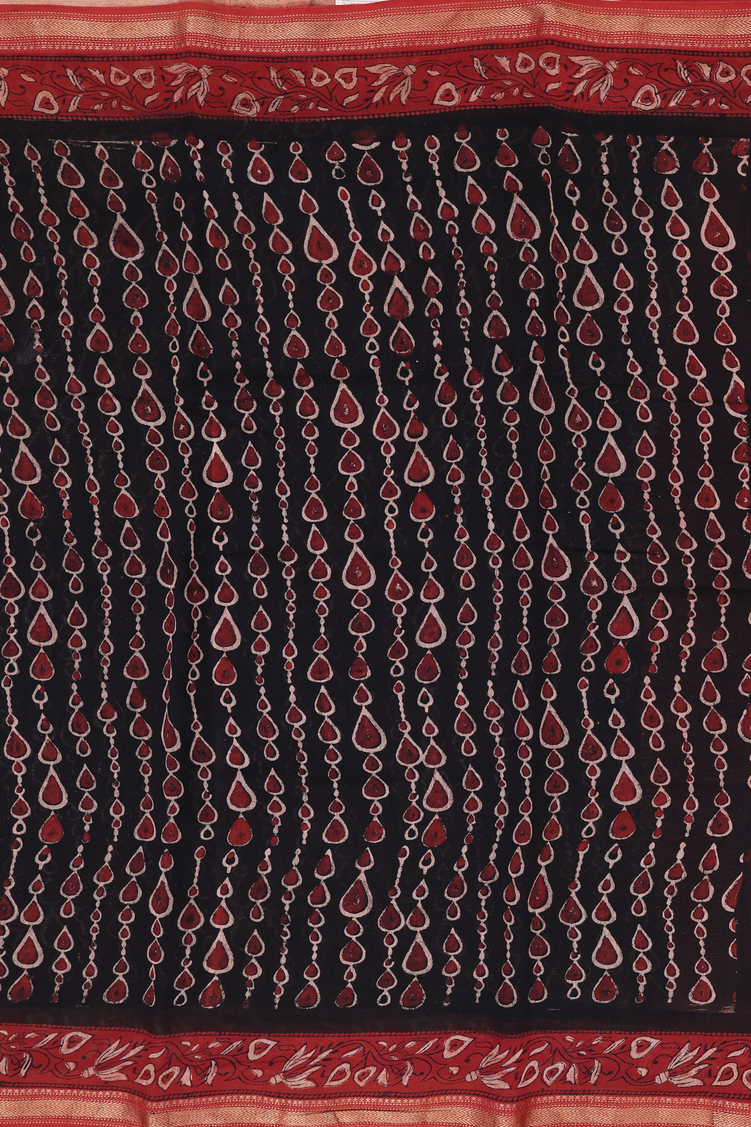 Chanderi Silk Cotton Saree In Black With Printed Design