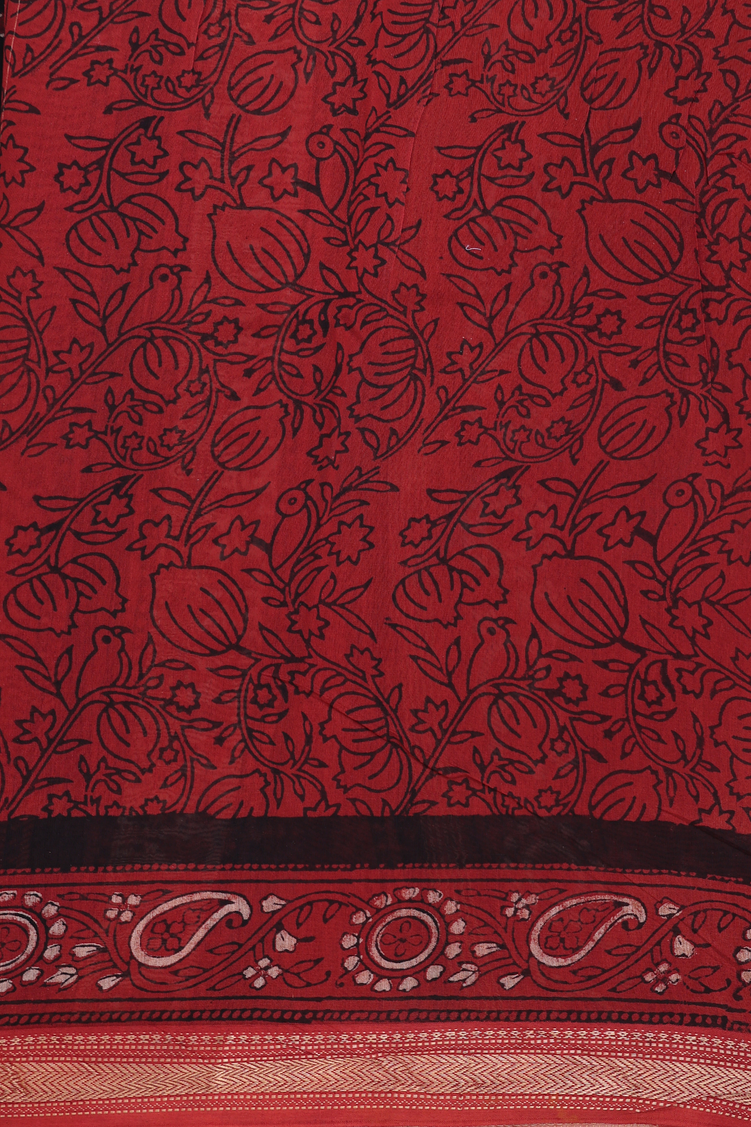 Chanderi Silk Cotton Saree In Black With Printed Design