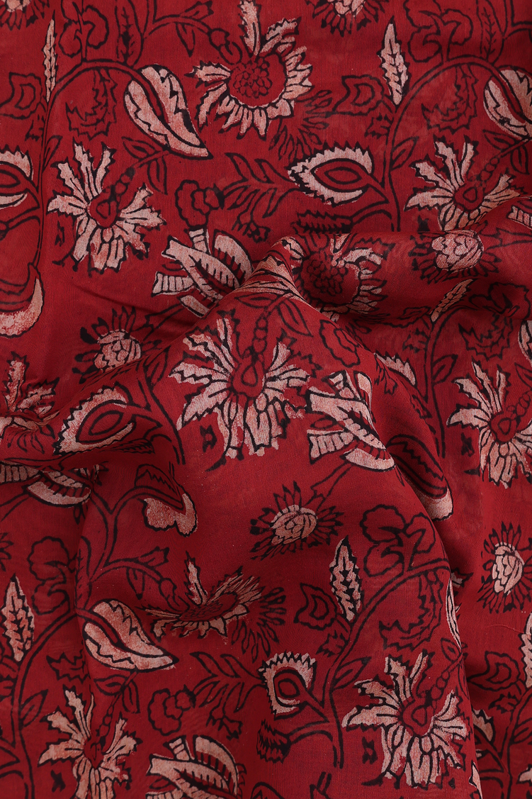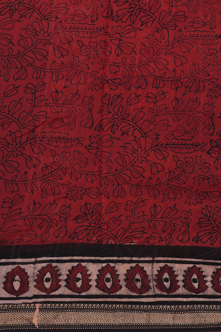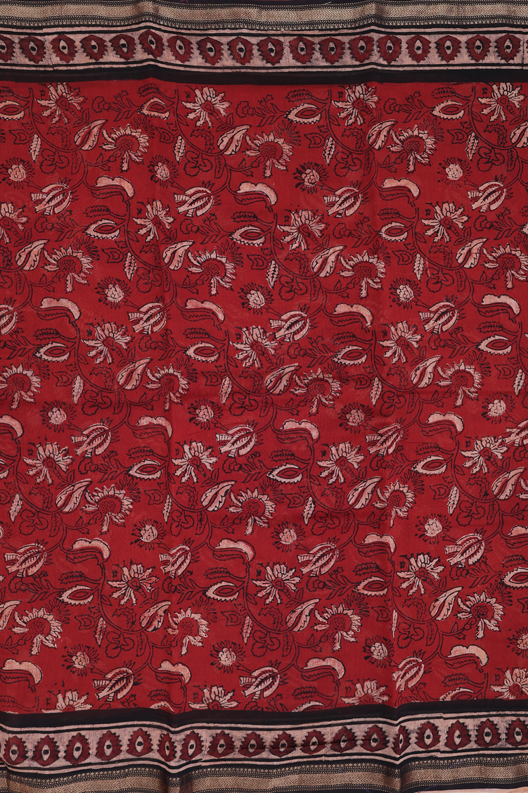 Chanderi Silk Cotton Saree In Brick Red With Floral Design