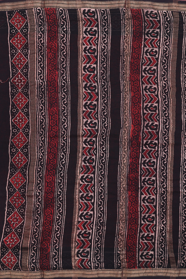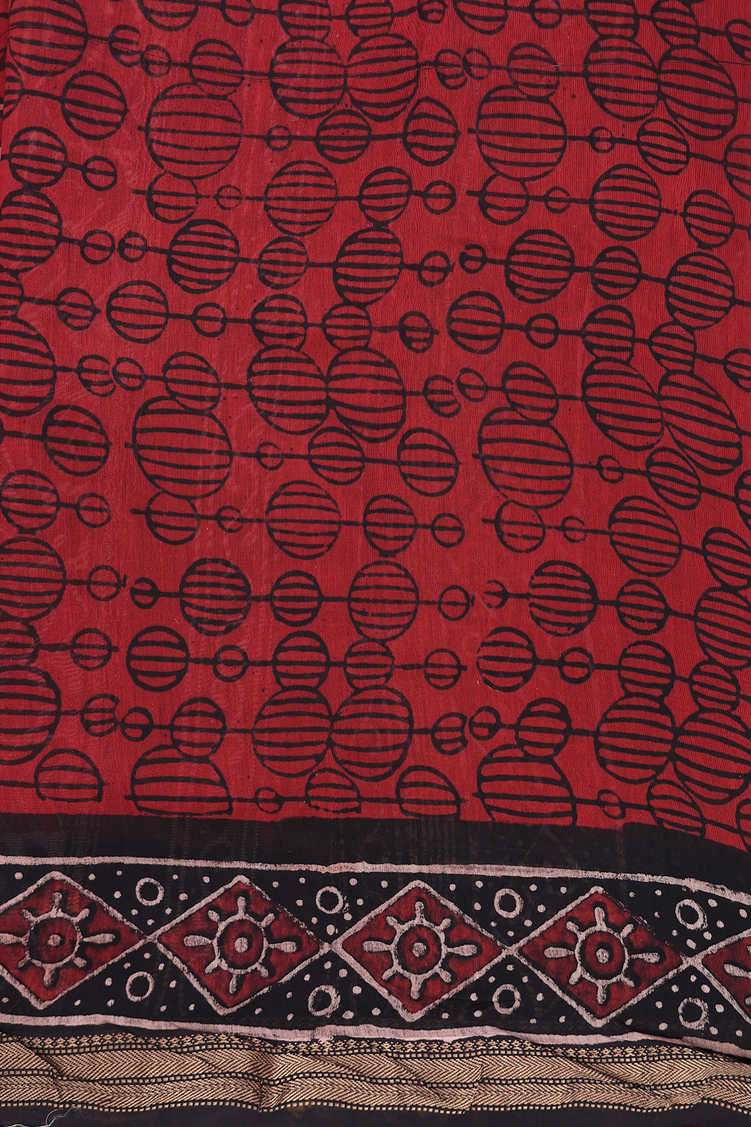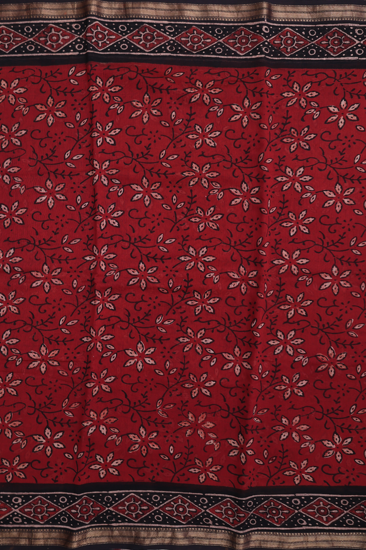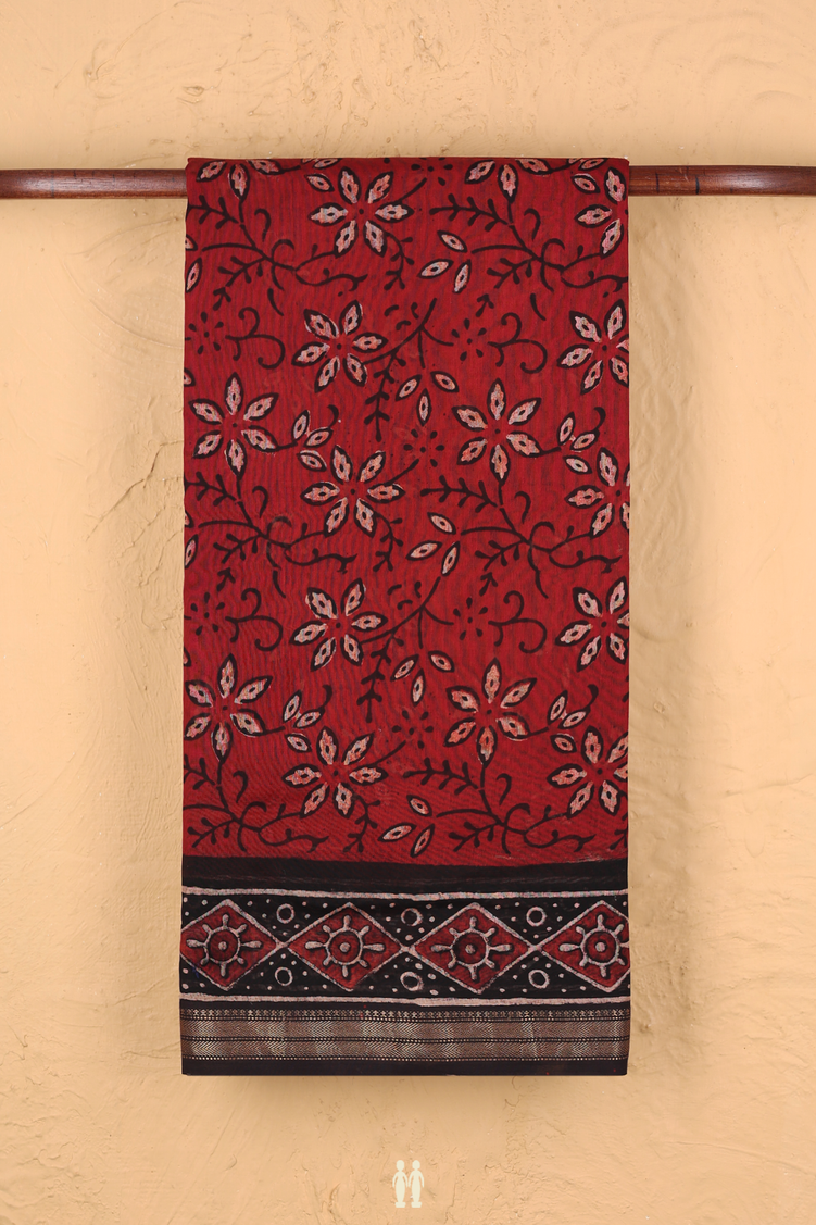 Chanderi Silk Cotton Saree In Brick Red With Floral Design