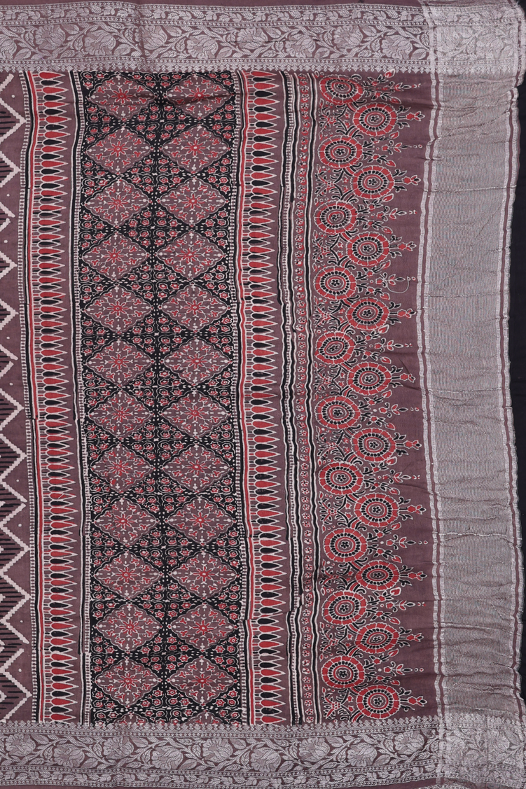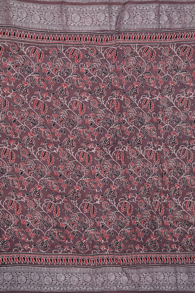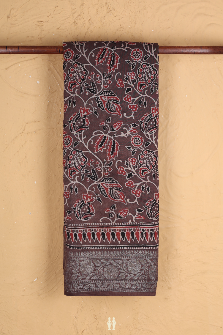 Chanderi Silk Cotton Saree In Brown With Printed Design