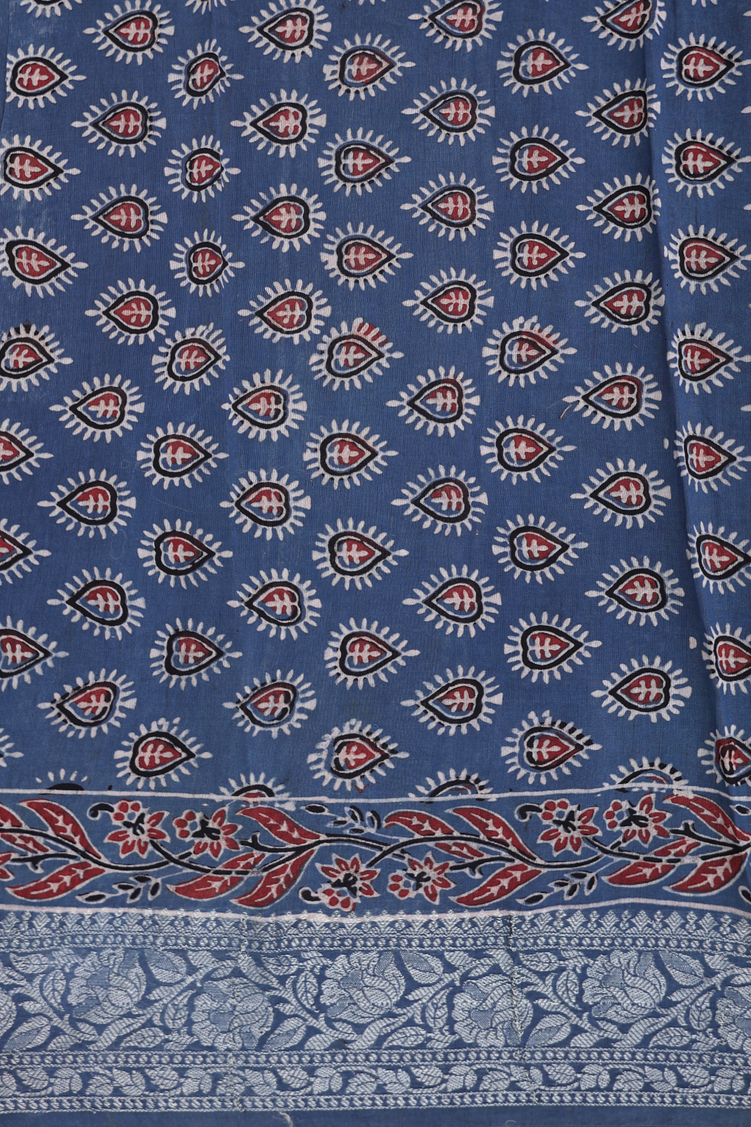 Chanderi Silk Cotton Saree In Capri Blue With Printed Design