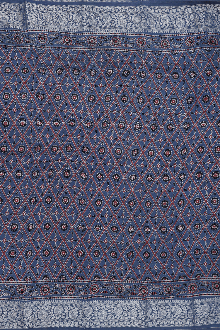 Chanderi Silk Cotton Saree In Capri Blue With Printed Design