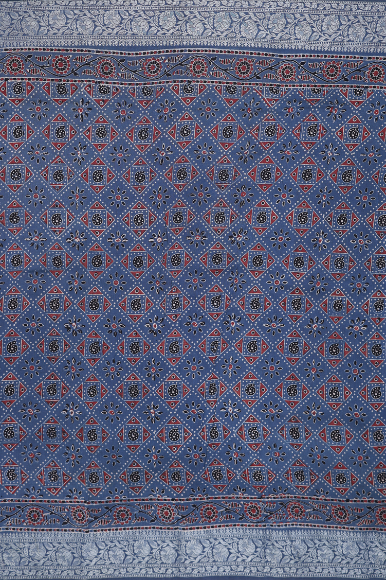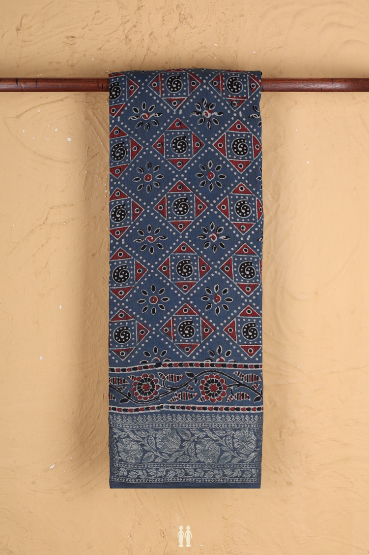 Chanderi Silk Cotton Saree In Capri Blue With Diamond Design