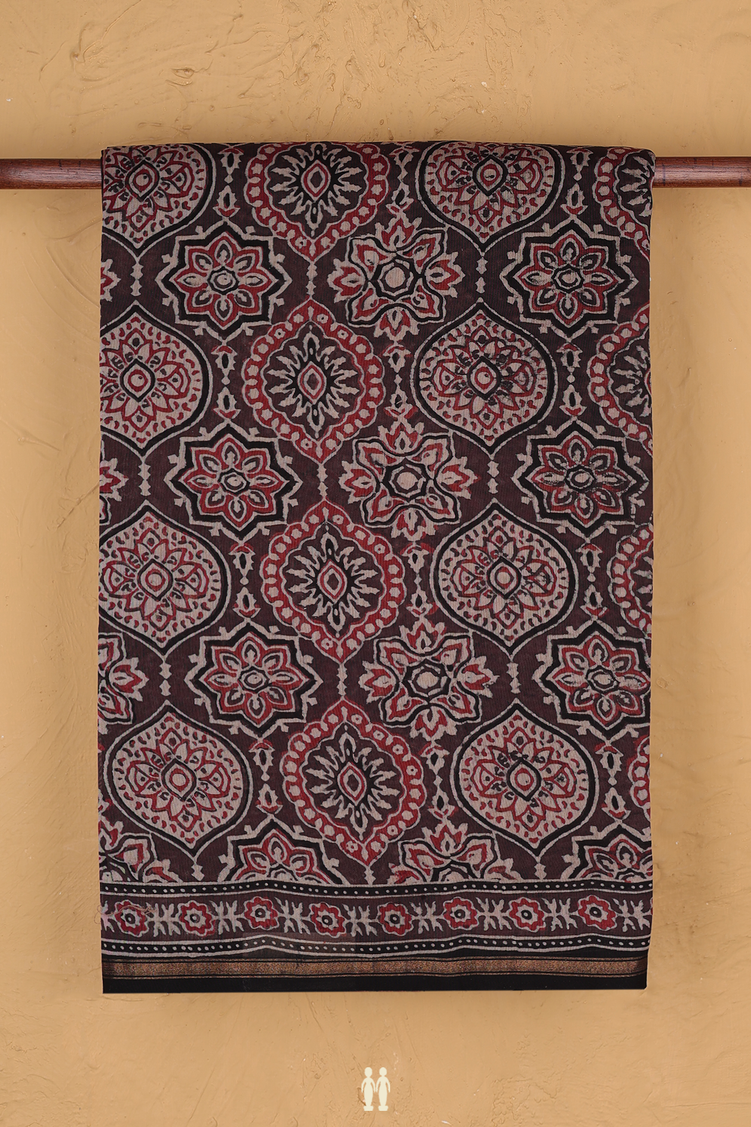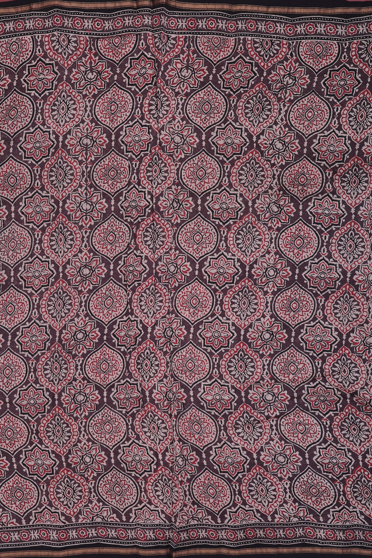 Chanderi Silk Cotton Saree In Cocoa Brown With Ogee Design