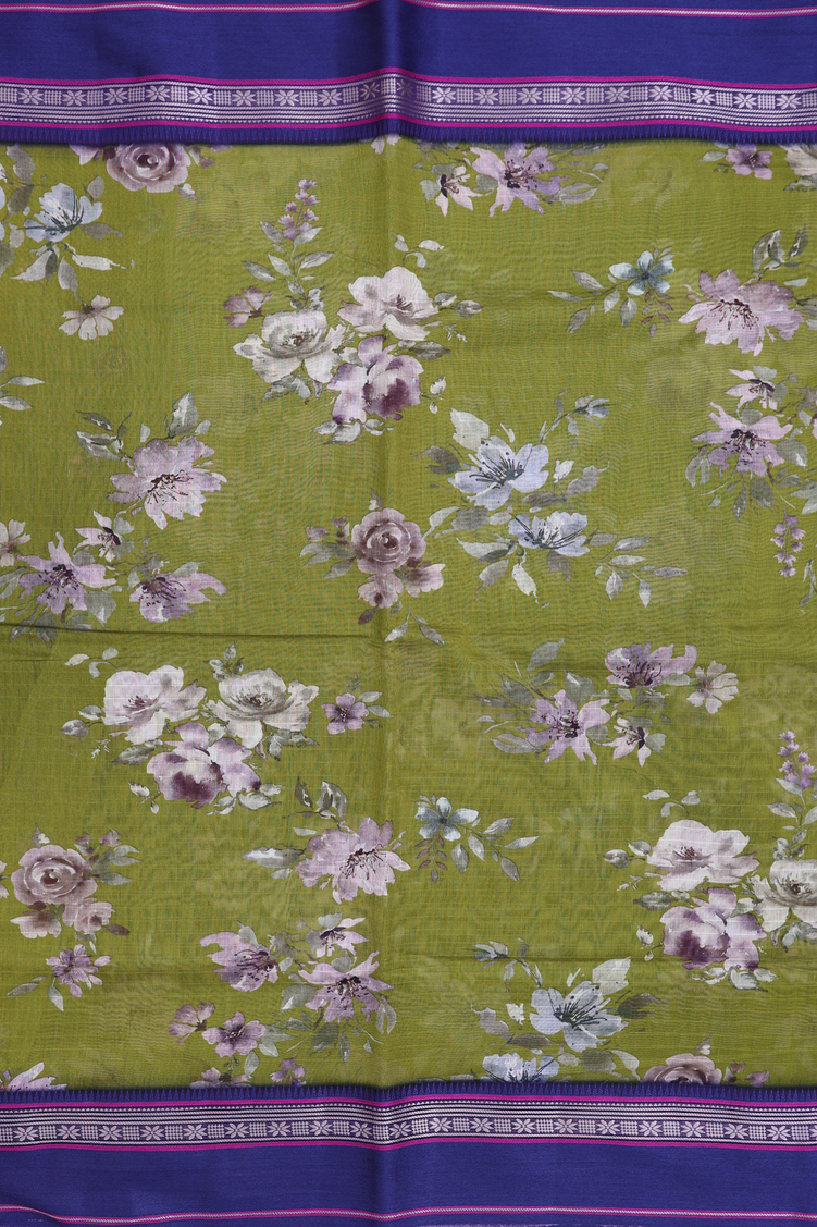 Chanderi Silk Cotton Saree In Fern Green Floral Design