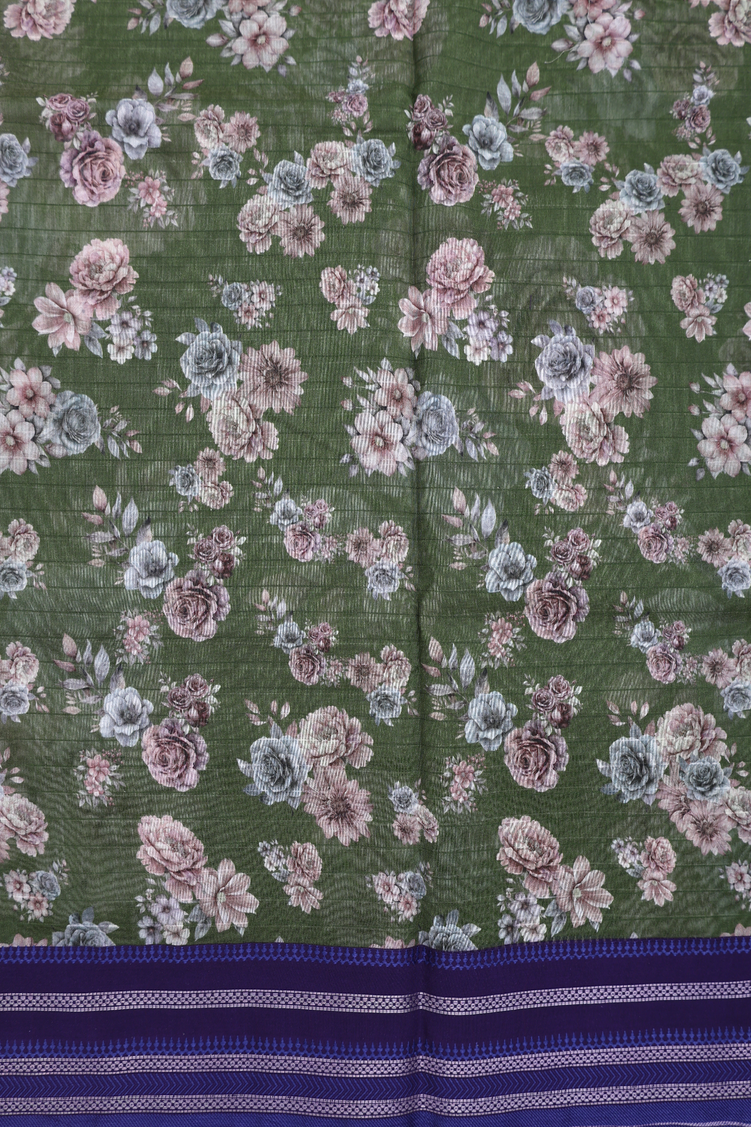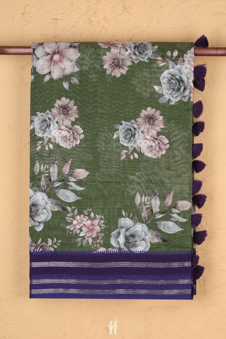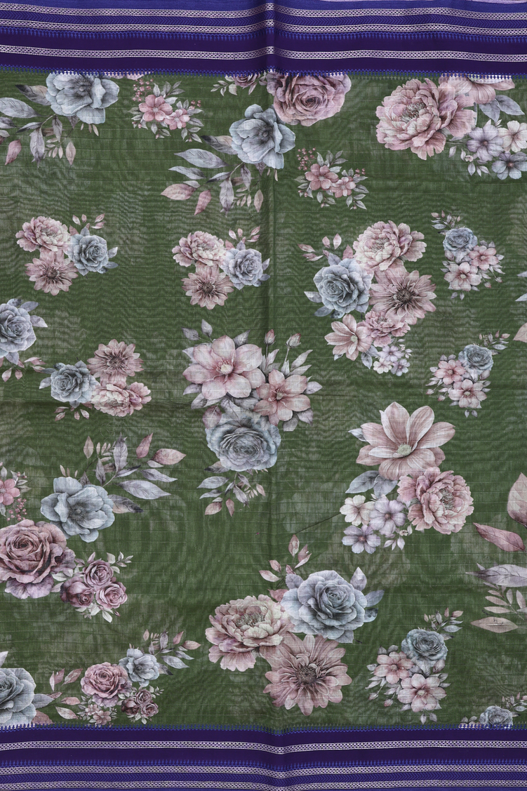 Chanderi Silk Cotton Saree In Fern Green With Floral Design