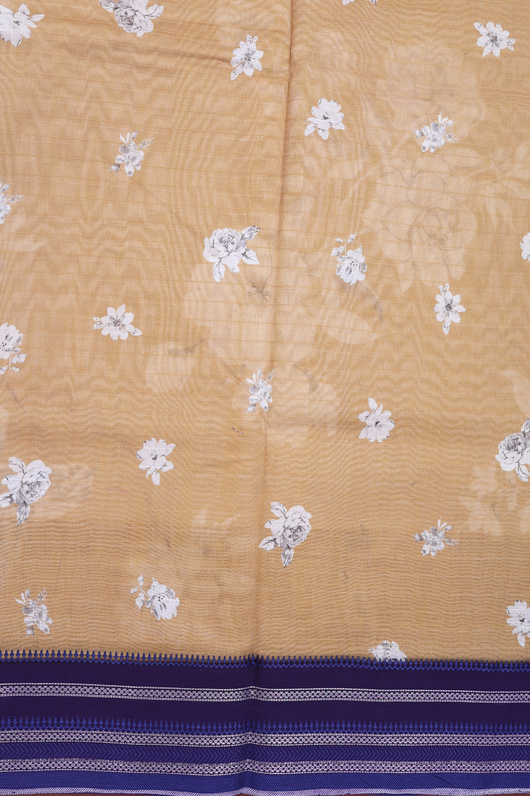 Chanderi Silk Cotton Saree In Mustard Brown With Floral Design