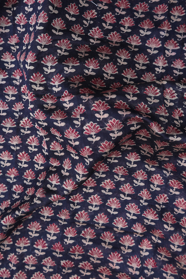 Chanderi Silk Cotton Saree In Navy Blue With Floral Design