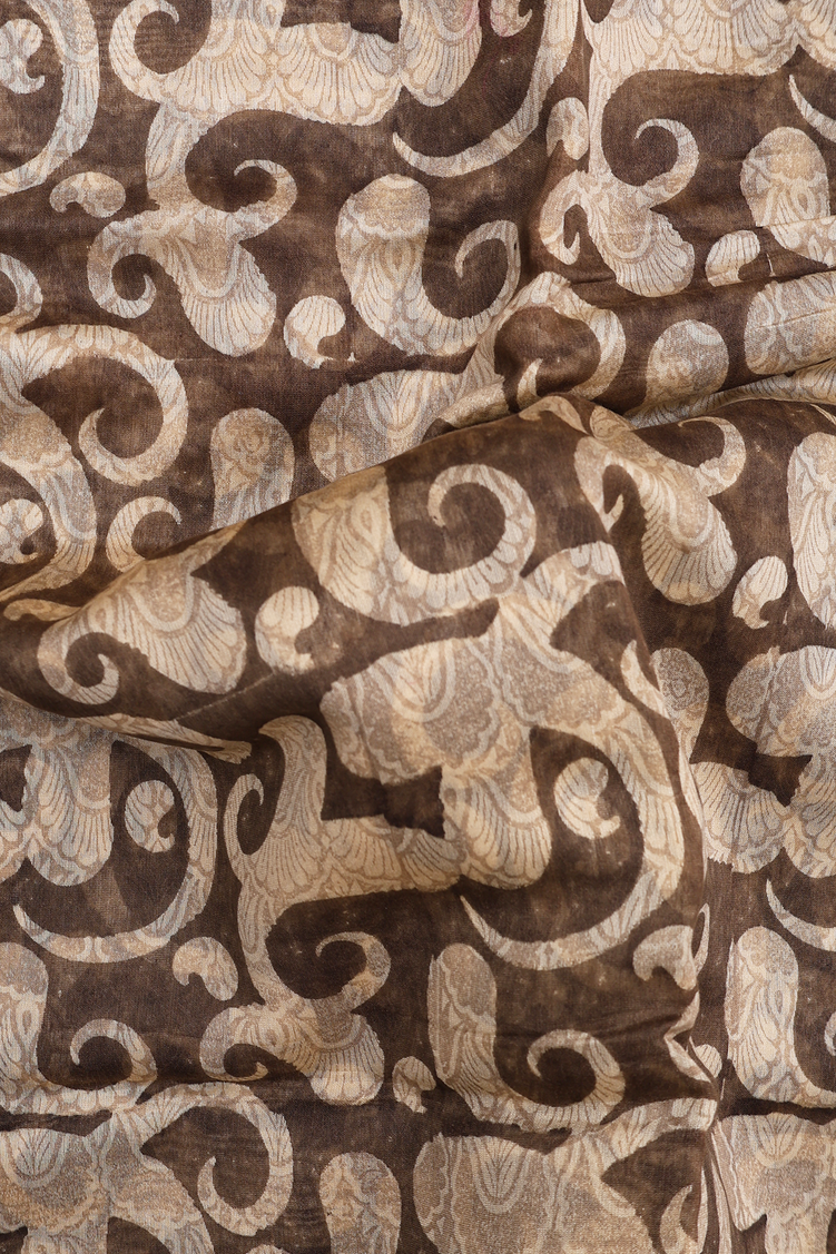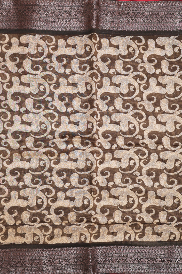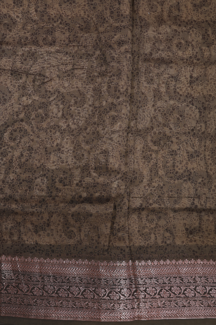 Chanderi Silk Cotton Saree In Olive Brown With Printed Design