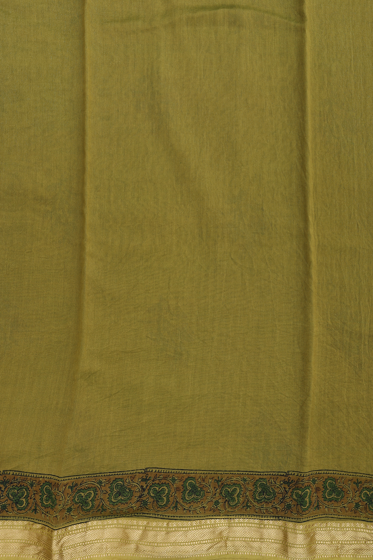 Chanderi Silk Cotton Saree In Olive Green With Floral Design