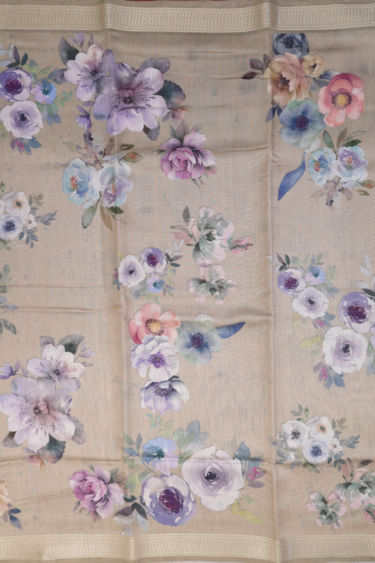 Chanderi Silk Cotton Saree In Pastel Khaki With Floral Design
