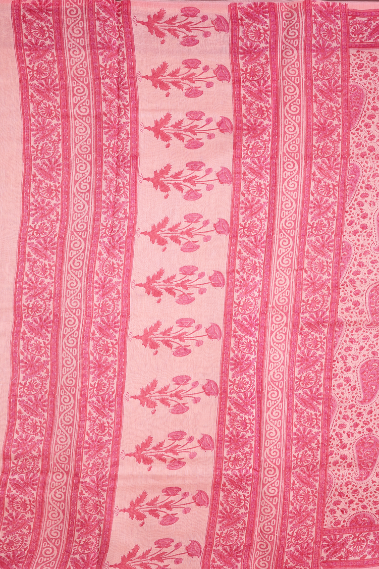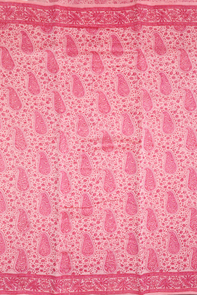 Chanderi Silk Cotton Saree In Peach With Paisley Design