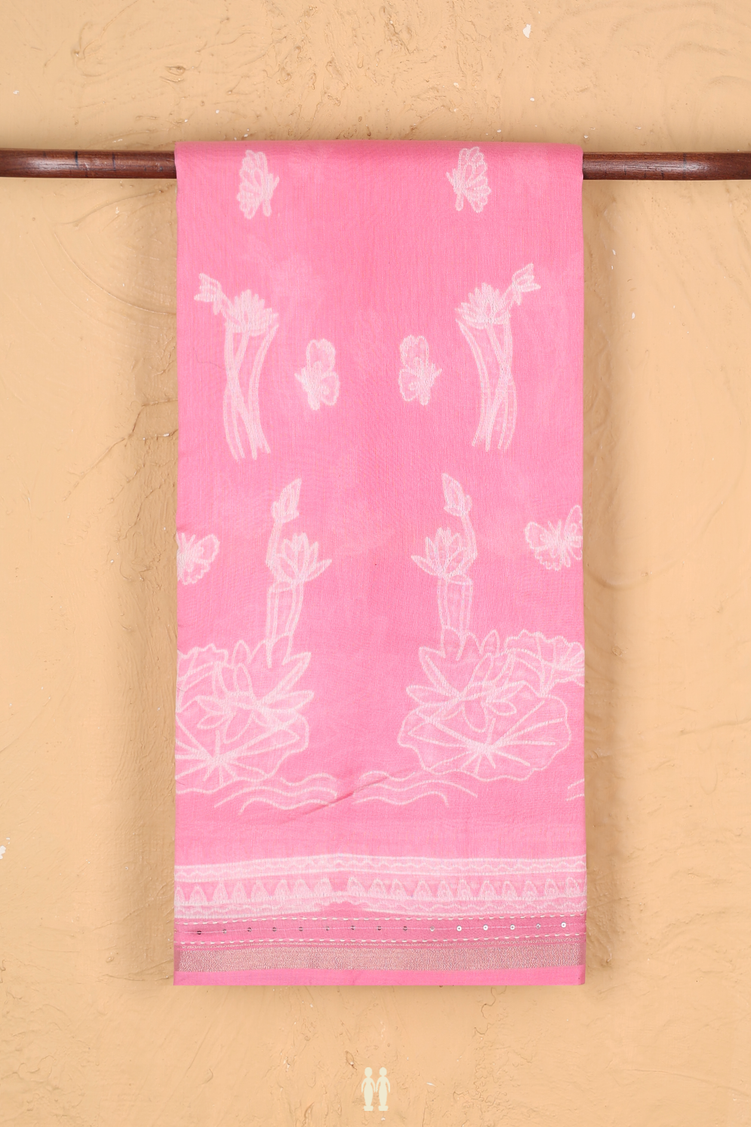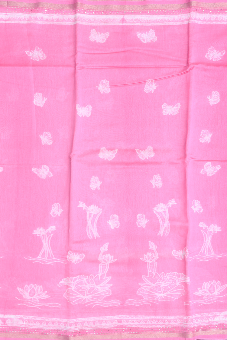 Chanderi Silk Cotton Saree In Pink With Shibori Design