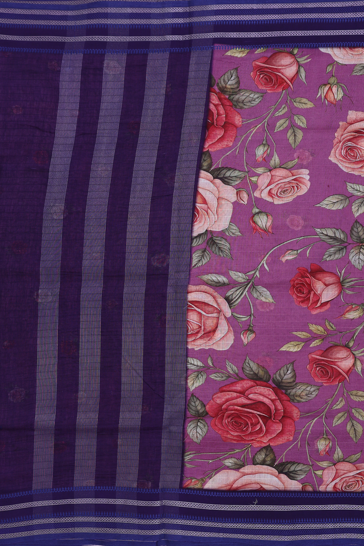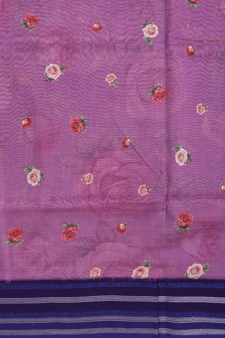 Chanderi Silk Cotton Saree In Purple With Floral Design